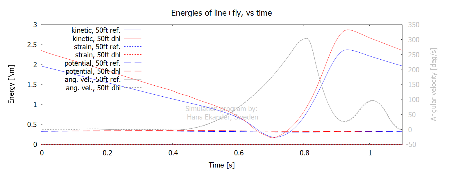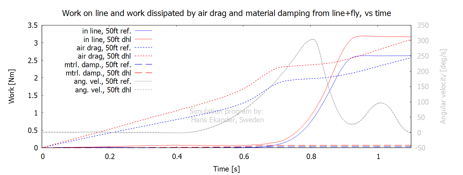 · “50ft dhl” simulated with dhl. Double haul denotes the hauling of line during the